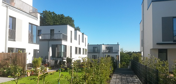 Im Zentrum des parkähnlichen Grundstücks mit altem Baumbestand befindet sich ein um die Jahrhundertwende entstandenes Herrenhaus. Es wurde aufwändig saniert und zu vier Häusern umgebaut. Dazu werden zwei freistehende Einfamilienhäuser und weitere 29 Stadt-/ Reihenhäuser mit je vier bis sieben Zimmern in der Größenordnung von 139 m² bis 180 m² Wohn- und Nutzfläche errichtet.